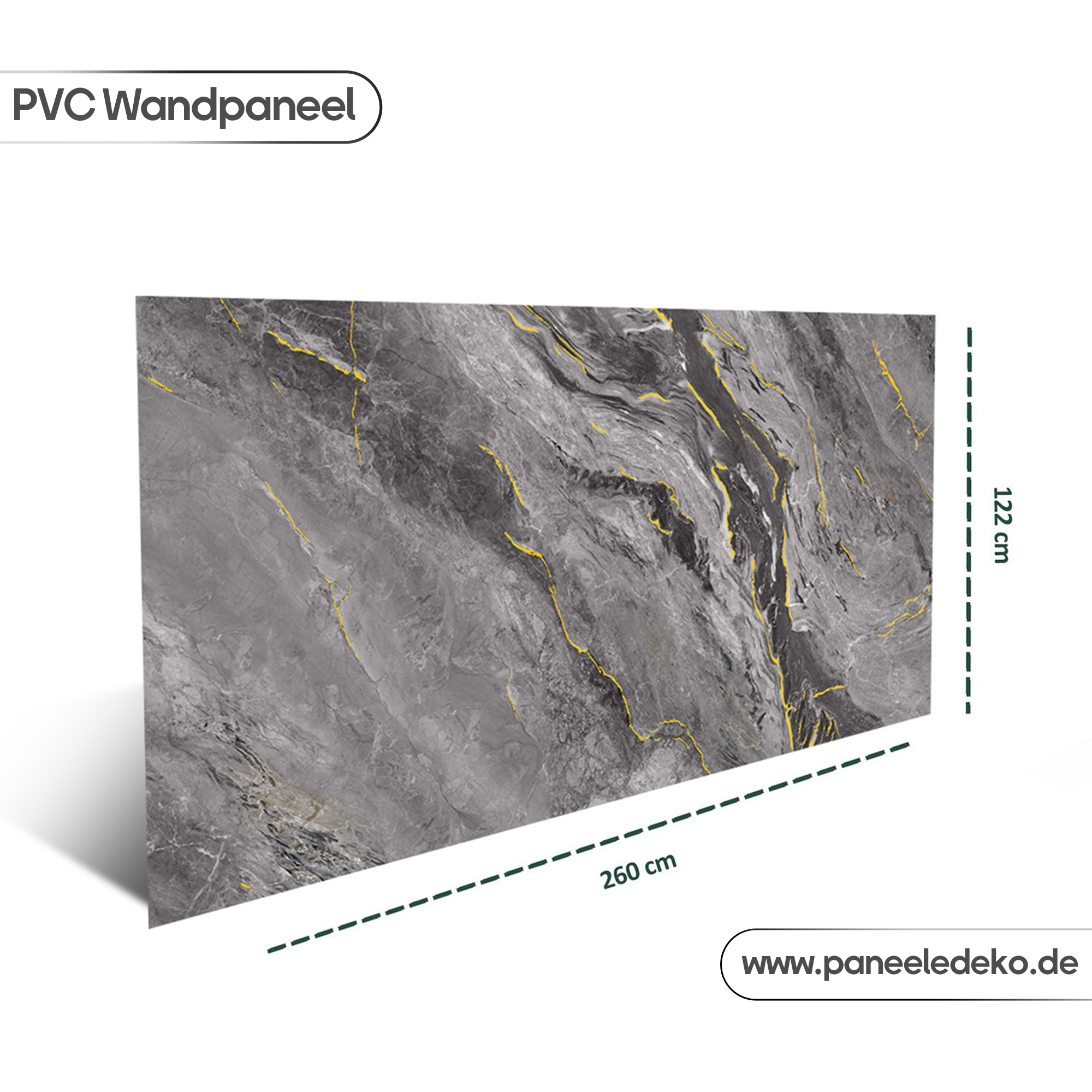 PVC-Marmorplatte – (Grau mit Goldadern)