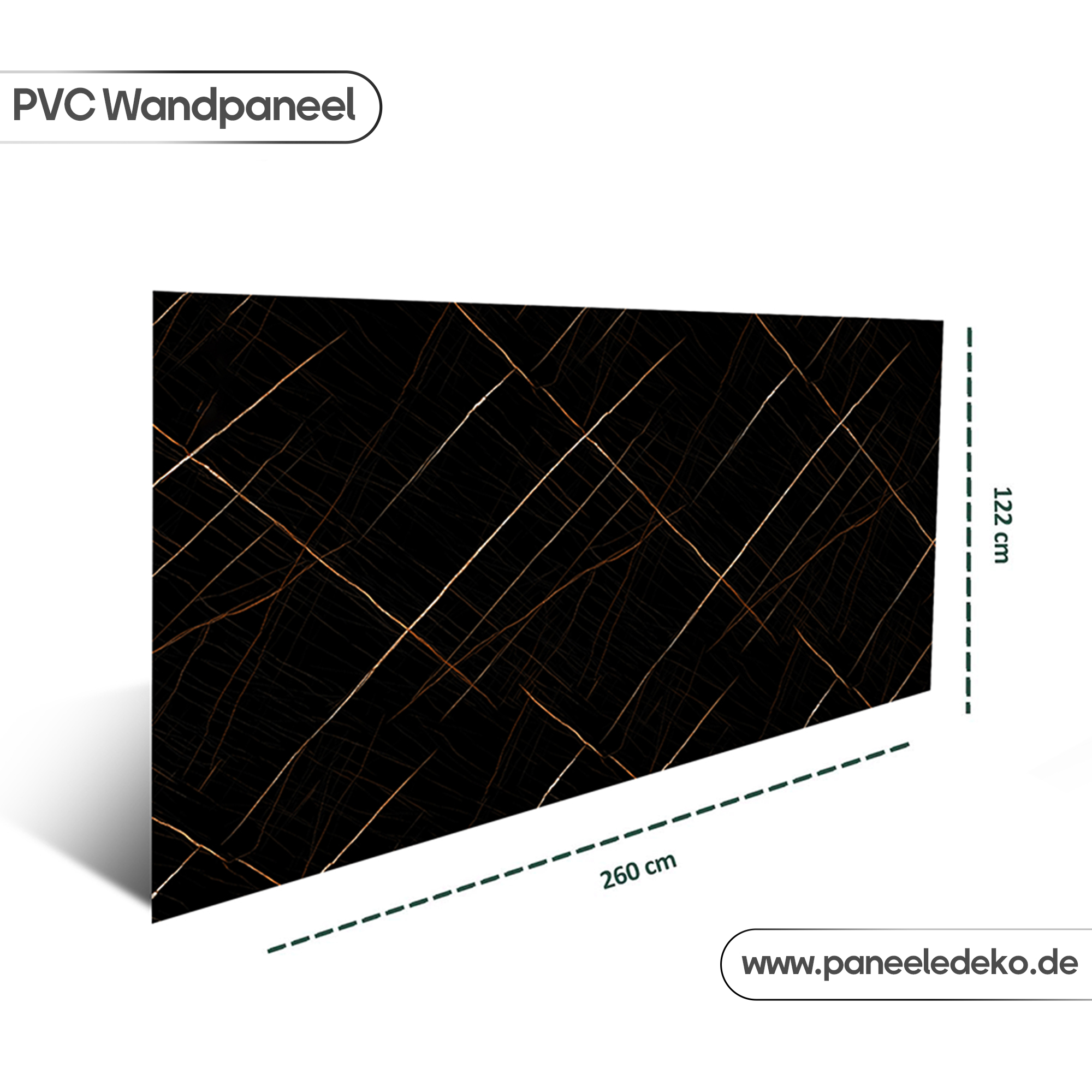 Mit Paneele Deko PVC-Marmorplatte – Schwarz mit Goldadern Hochglanz holen Sie sich luxuriöse Marmor-Optik und praktische Alltagstauglichkeit in einem – stilvoll, glänzend und kinderleicht zu reinigen.
