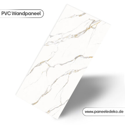 Die Paneele Deko PVC-Wandpaneele in PVC-Marmorpaneel – Luxus-Gold-Flow Hochglanz verwandeln Ihre Räume in ein modernes, elegantes und absolut pflegeleichtes Ambiente.