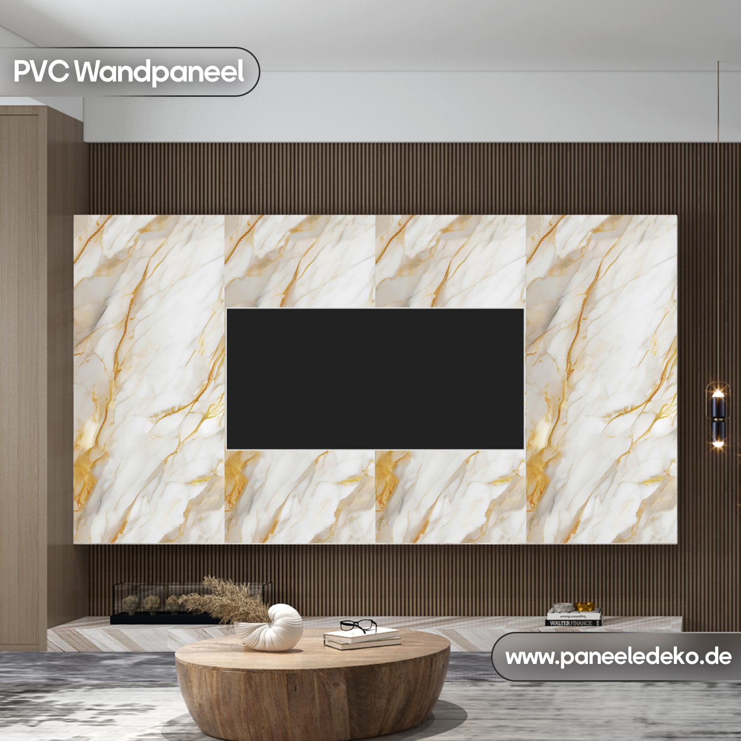 Die Paneele Deko PVC-Wandpaneele in Marmor Casablanca Creme Hochglanz verwandeln Ihre Räume in ein helles, luxuriöses und pflegeleichtes Ambiente.