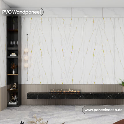 PVC Paneel – (Weißer Marmor mit goldenen Adern)